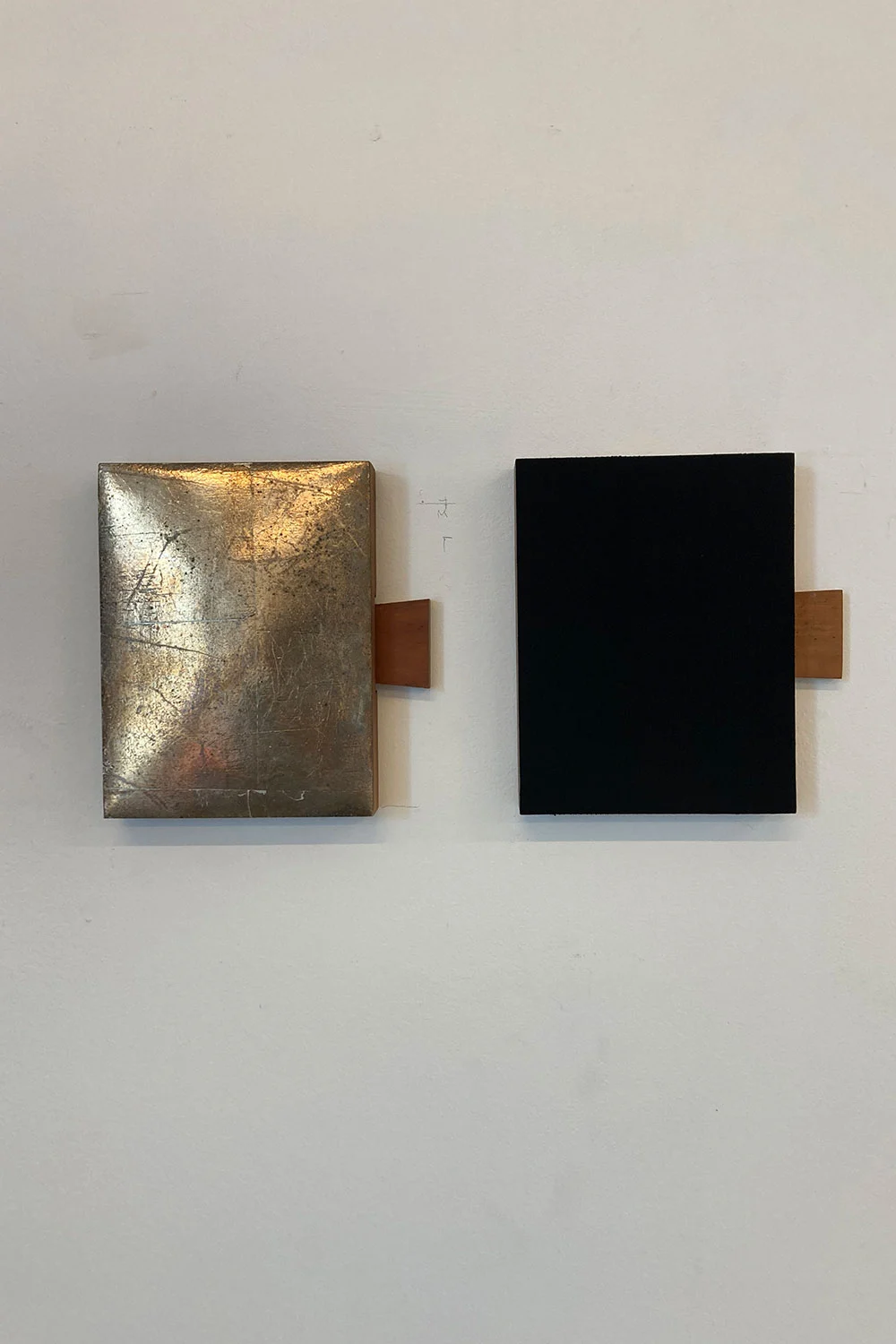 Sönderkysst, 2023, silver och färpigment på trä, 17 x 13 x 2 cm